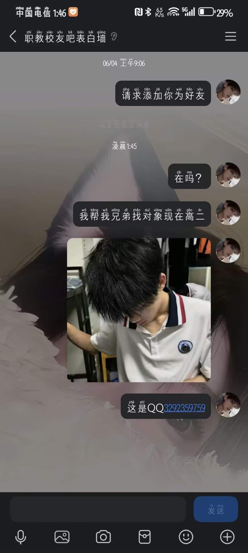 2025-09-03 表白墙 #职教校友吧表白墙 0 评论 38 喜欢 分享 云阳表白墙代发 💗🤖 这个人很懒,还没有简介 查看TA的全部内容 +关注 校园云阳 去发现更多有趣内容 微信扫码打开校园云阳小程序 体验更多「校园云阳」新功能 评论 0 我也来讲两句